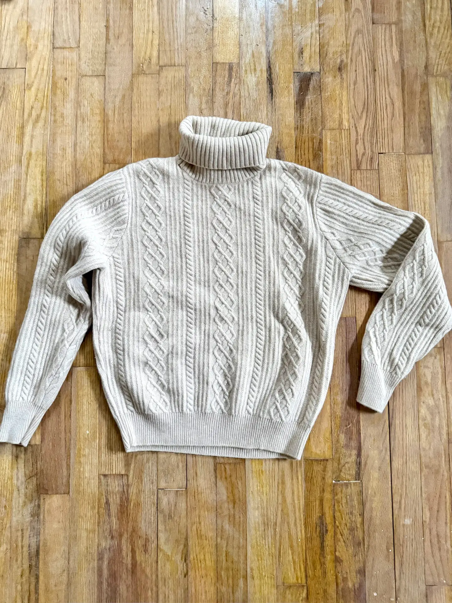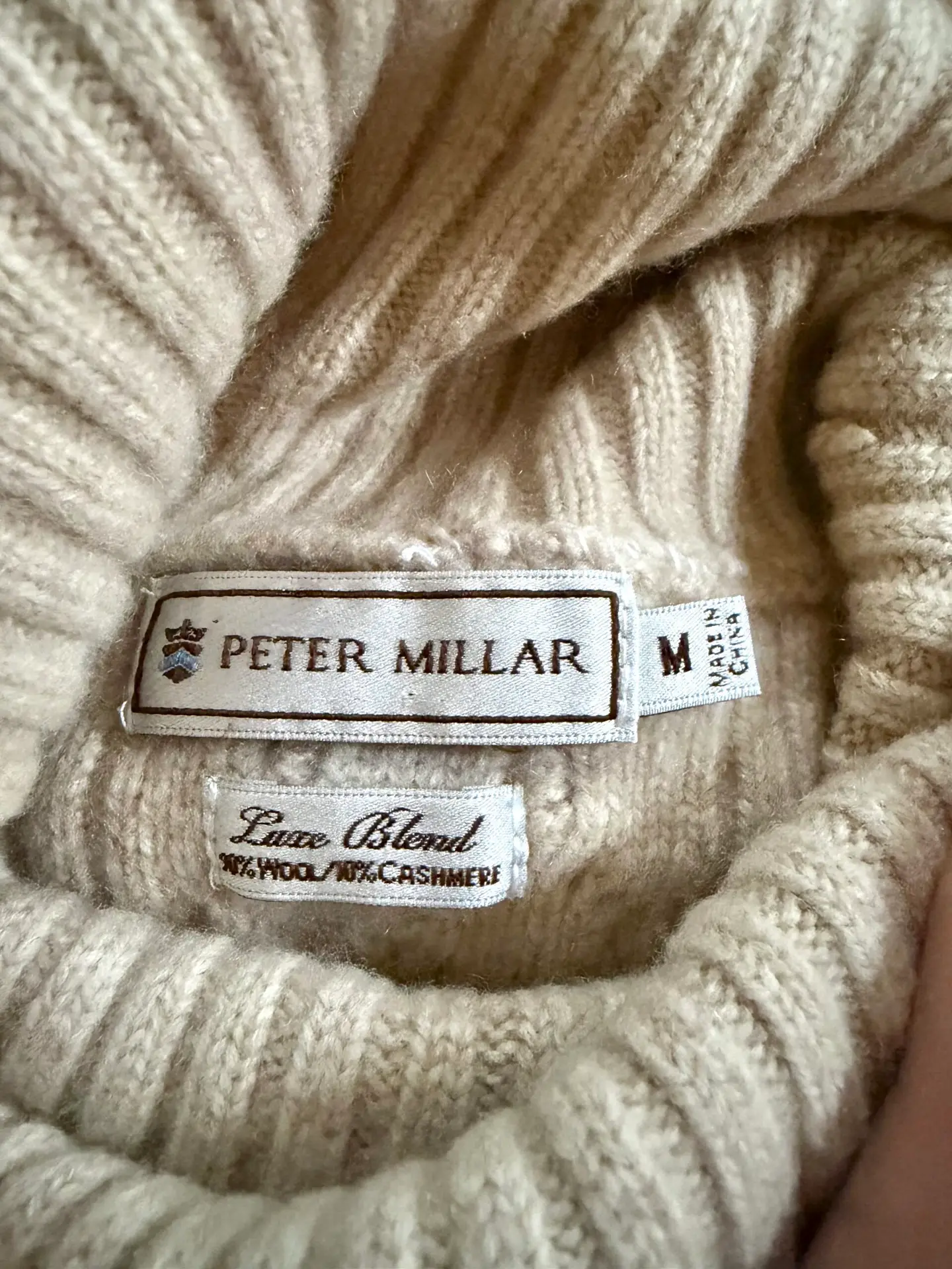 Peter Millar cable knit turtleneck sweater in a classic neutral tone. A timeless cold-weather essential with elevated craftsmanship.
